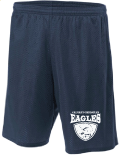 ADULT Tricot Mesh Short A4 9" Lined Tricot Mesh Short with Screen Print Design: PE Short/Sweatpant Design - Left Leg. Color: Navy | Size(s): Adult Sizes: XS - 4XL |