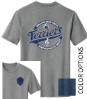 District Perfect BlendTee. with Screen Print Design: Redlands Instrumental Band Design - Full Front & Full Back. Color: Deep Royal Fleck and Grey Frost | Size(s): Adult Sizes: XS-4XL